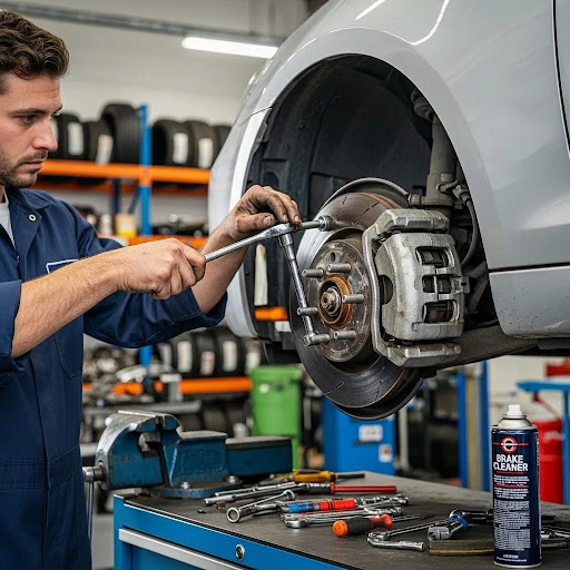 Initial assessment: Visual check of pads, rotors, hoses, and calipers for leaks, damage, and uneven wear